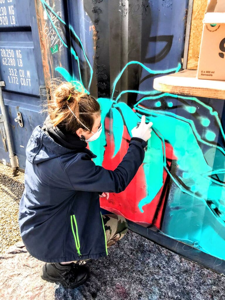étaient riches en apprentissage pour les jeunes des pépinières d’initiatives jeunesses de L’EclectiC Léo Lagrange et le Triptic Léo Lagrange ! Aux côtés de l’artiste rezéen Korsé, ils/elles ont pu (re)découvrir la pratique du graffiti et ainsi donner un nouveau visage aux conteneurs de la zone food de Transfert.